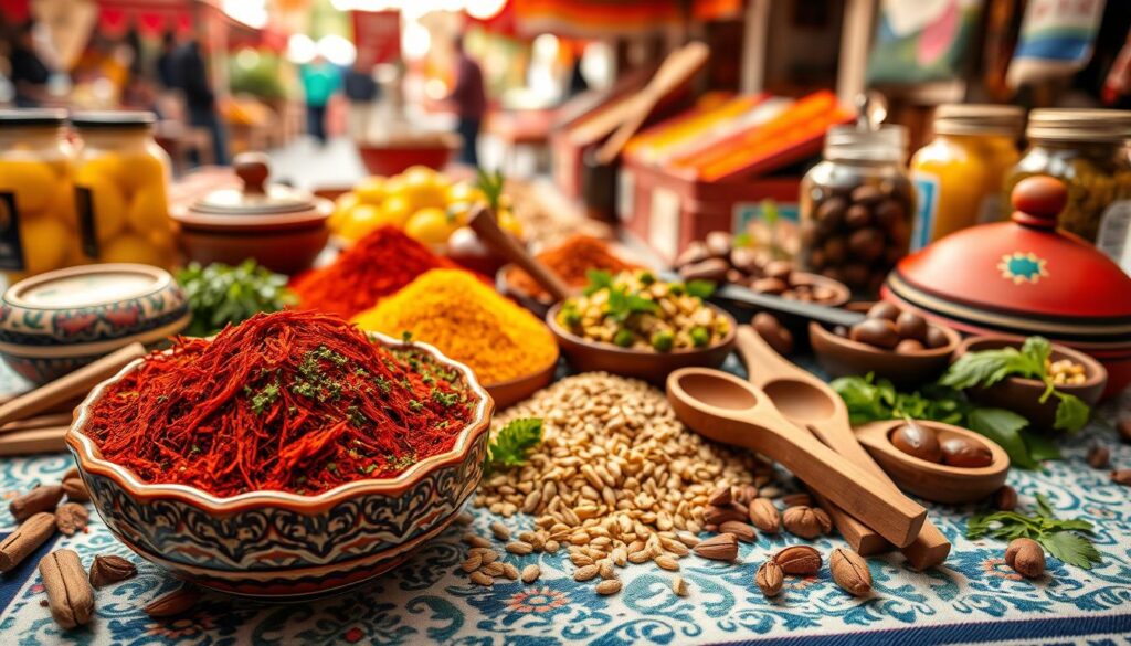 Lo saffron è l’oro rosso di Fez. Crea quelle tonalità dorate che riconosci immediatamente nei piatti autentici. Il cumin invece domina nelle preparazioni rosse, con il suo profumo terroso che ti avvolge nei mercati.